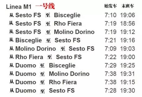 此外,米兰地铁的发车间隔和运营时间也有所调整,具体信息如下: