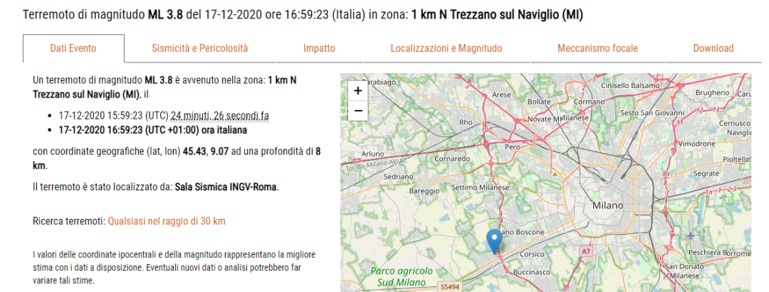 快讯:今天(17日)16时59分,米兰省纳维廖河畔特雷扎诺(Trezzano sul Naviglio)以北1公里处发生地震。根据意大利国家地球物理与火山研究所(INGV)初步估计,此次地震震级为3.8级。