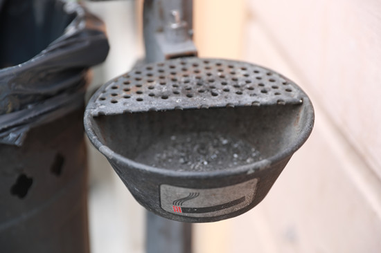 垃圾箱上的烟灰缸。(图片来源:新华社)