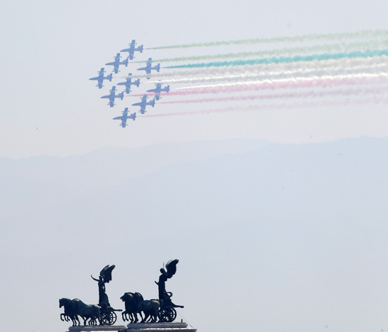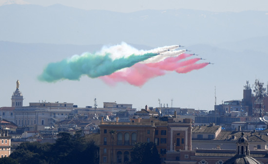 罗马举行飞行表演 庆祝意大利空军建立98周年