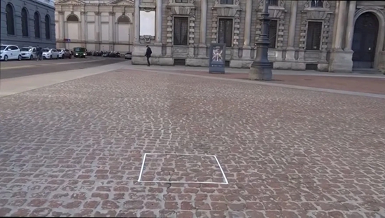 2月,加劳又在米兰市中心斯卡拉广场展出自己的另一个无形雕塑作品“沉思的佛”(Buddha in contemplazione),唯一能看到的只有用胶带贴出的地标。
