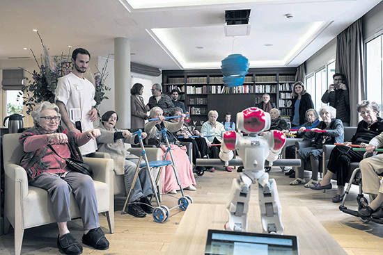 机器人“Zora”在法国一家养老院中为老年人表演。(图片来源:法新社)