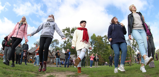 9月19日,游客们在白俄罗斯首都明斯克郊区的苏拉公园参与互动游戏。(图片来源:本文图片均自新华社)