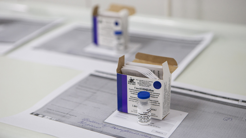 9月15日在俄罗斯首都莫斯科拍摄的俄罗斯第1款新冠疫苗“卫星-V”的针剂。(图片来源:新华社)