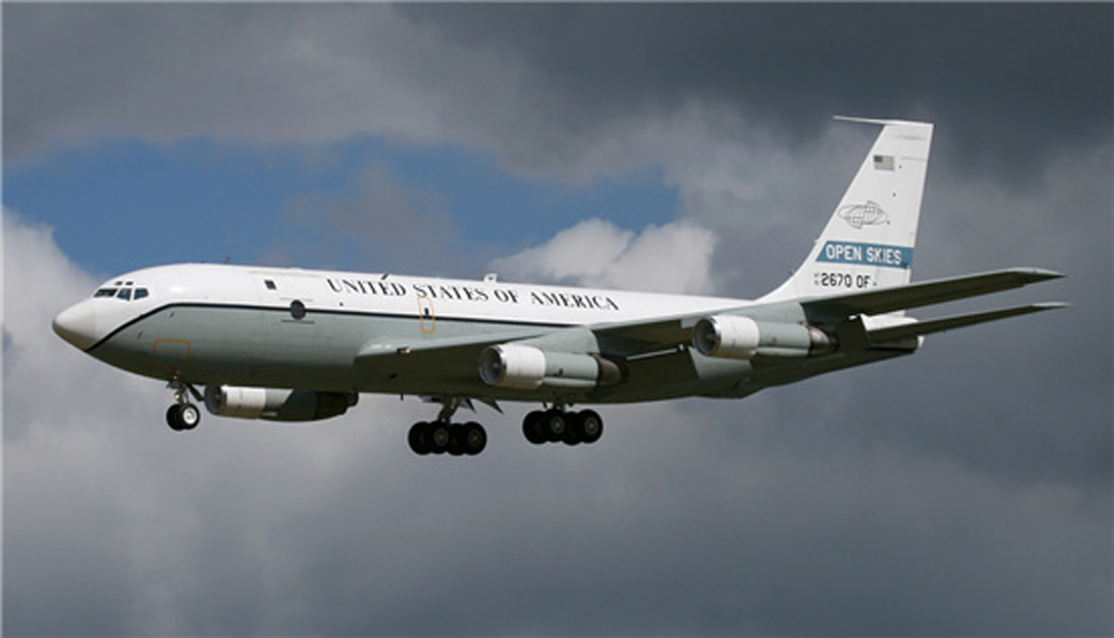图为美国用于执行侦查俄罗斯任务的OC-135B侦察机。(图片来源:中国央视网)