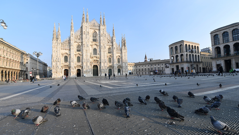 11月6日,在意大利米兰,大教堂前行人稀少。(图片来源:新华社)
