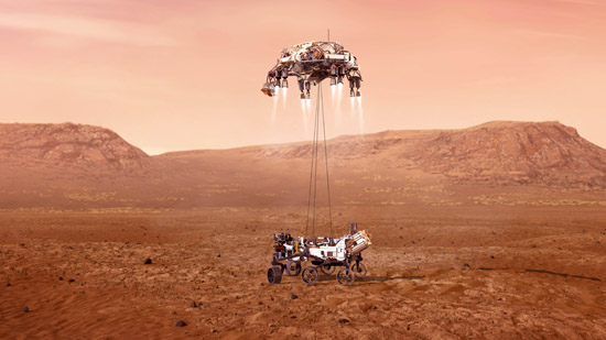 2月18日,美国“毅力”号火星车在火星成功着陆,将寻找火星上可能存在过的生命迹象。(图片来源:新华社)