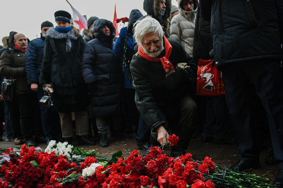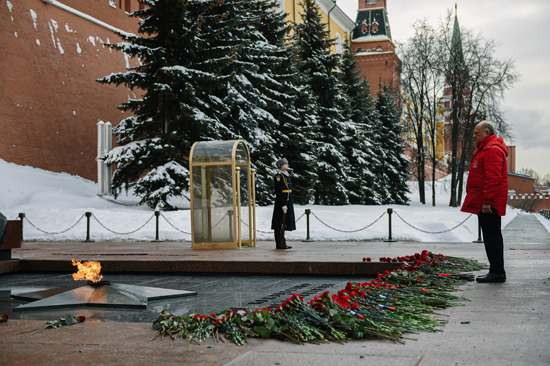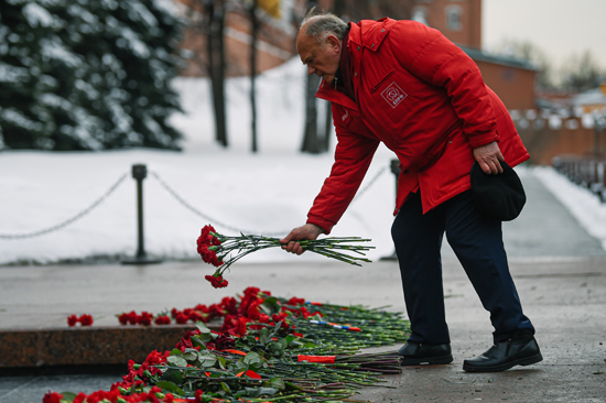 俄罗斯联邦共产党中央委员会主席久加诺夫向无名烈士墓献花,纪念祖国保卫者日。