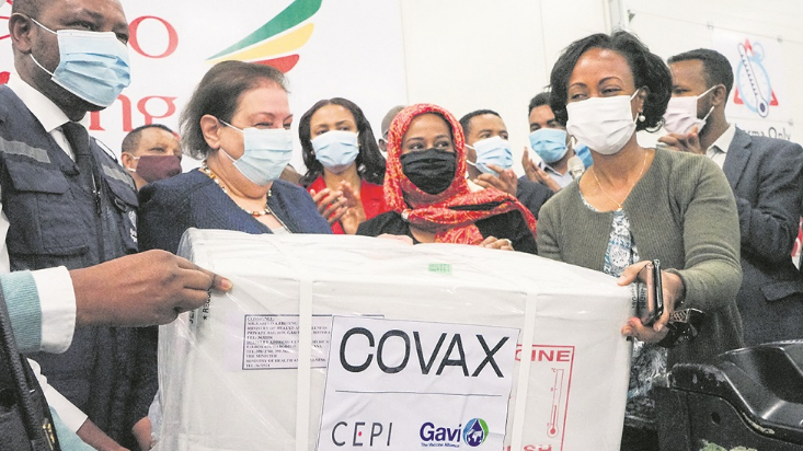 COVAX项目是许多发展中国家目前获得新冠疫苗的唯一途径。图为3月7日埃塞俄比亚卫生部长Lia Tadesse(右)在机场迎接COVAX项目配送的牛津-阿斯利康疫苗。(法新社图)