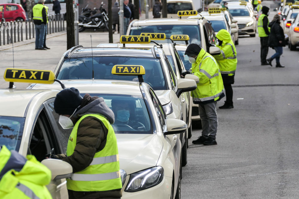 3月19日,在德国柏林的一个新冠疫苗接种中心,工作人员为前来载客的出租车司机登记。(图片来源:新华社)