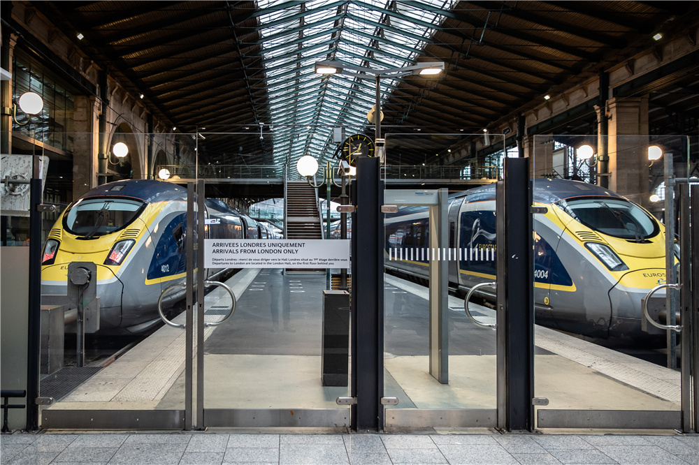 这是2020年12月21日在法国巴黎北站拍摄的欧洲之星列车。(图片来源:新华社)