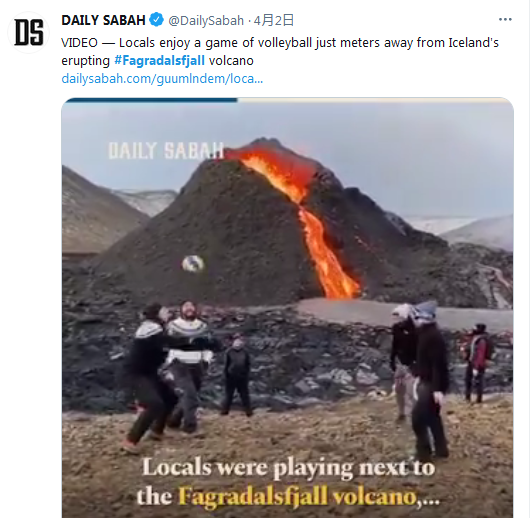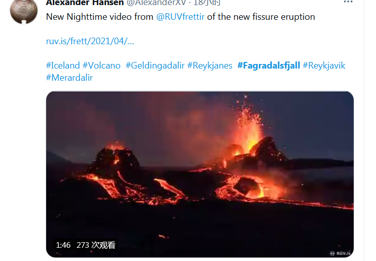 法格拉达尔火山爆发的景象。(图片来源:推特截图)