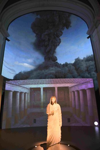 2020年巴黎大皇宫展览中数码全景再现维苏威火山喷发,将庞贝瞬间掩埋的过程。(图片来源:中新社)