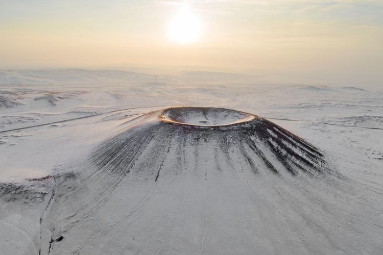 位于内蒙古自治区中部的察哈尔火山景色。(图片来源:新华社)