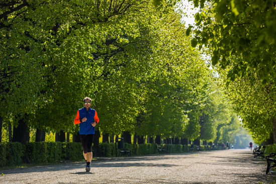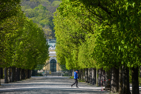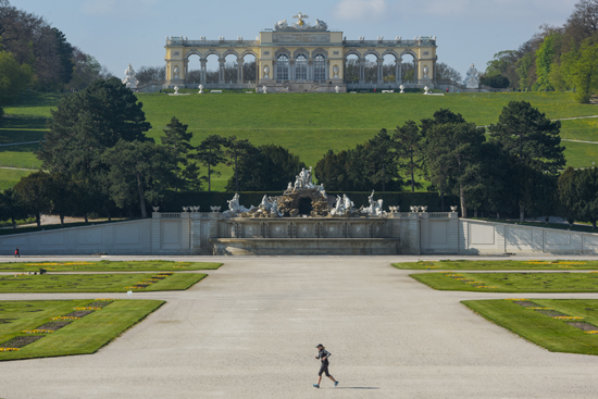 一名男子在奥地利维也纳美泉宫内跑步。