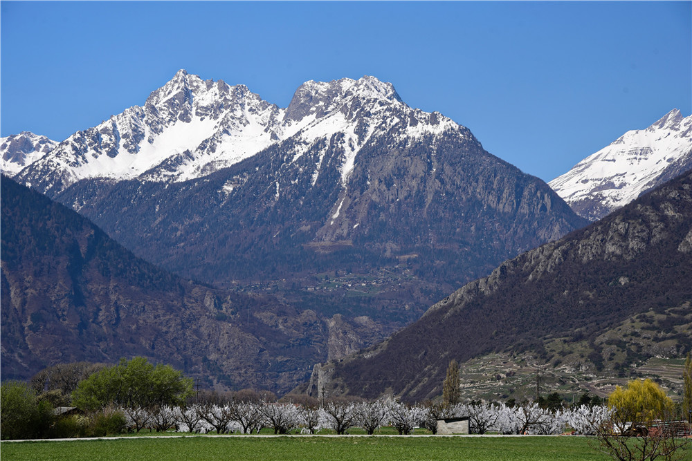 这是4月8日拍摄的瑞士瓦莱州一处果园。(图片来源:新华社)