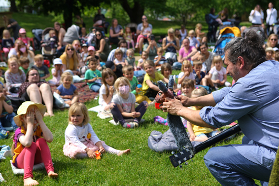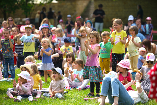 人们在捷克首都布拉格举行的儿童节庆祝活动上观看表演。