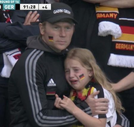 与此同时,德国球迷失望的神情也被摄像机记录下来。这个泪洒赛场的小球迷,让全世界人都发出叹息: