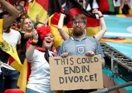 在英格兰对德国的赛场上,还出现了一对夫妇支持不同球队的刺激景象: