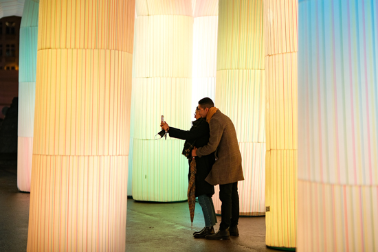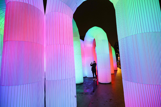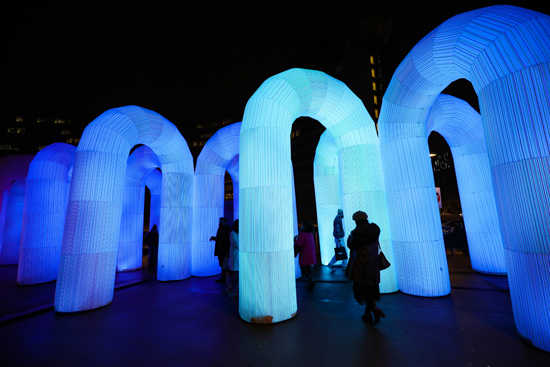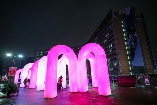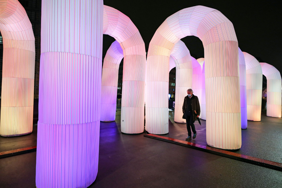 为迎接即将到来的圣诞节和新年,布鲁塞尔市在欧盟总部所在地舒曼广场设立大型互动灯光装置艺术作品“天空城堡”。据了解,“天空城堡”由十余个拱门结构组成,运用声光电技术,可以给观众带来沉浸式体验,该作品于2021年11月30日至2022年1月1日免费向公众开放。