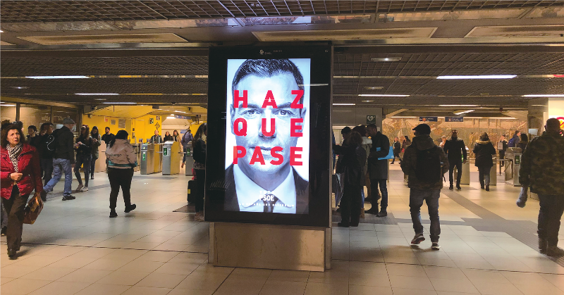 马德里Avenida de América车站内社工党的竞选宣传广告。(图片来源:欧洲时报记者林碧燕 摄)