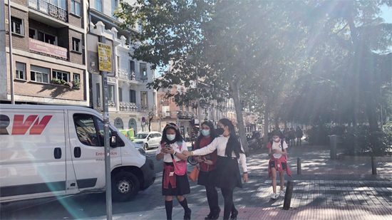 马德里学生放学后走在大街上。(图片来源:欧洲时报记者林碧燕摄)
