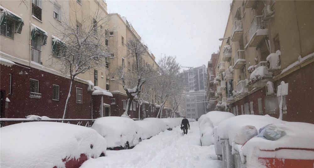 截至13日,马德里已清除了9000条街道中的1343处积雪和430条人行道,这意味着有1374公里的积雪已经被清除。