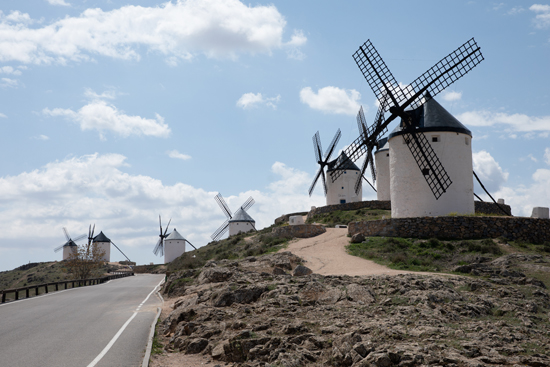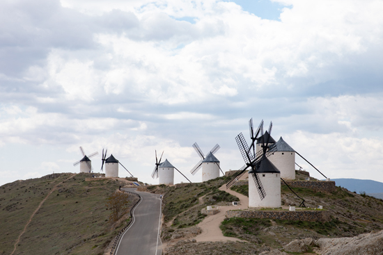 风车是西班牙卡斯蒂利亚—拉曼查自治区的代表性景观之一,孔苏埃格拉小镇共有11座风车散落在起伏的山丘上,景色壮观。