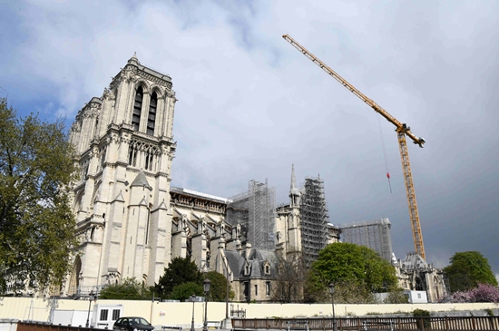 图为4月15日拍摄的巴黎圣母院维修工程现场。(图片来源:中新社)