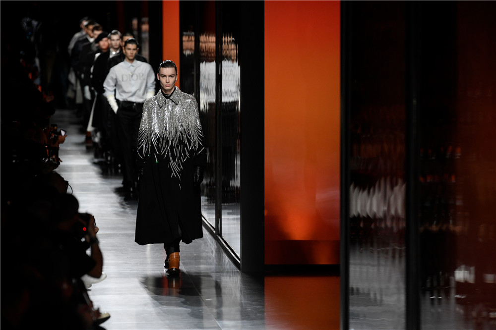 2020年1月17日,在法国巴黎男装周上,模特展示迪奥品牌2020/2021秋冬新款服装。(图片来源:新华社)