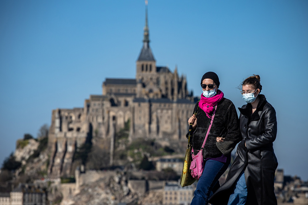 图为人们参观法国西部的知名景点圣米歇尔山。(图片来源:新华社)