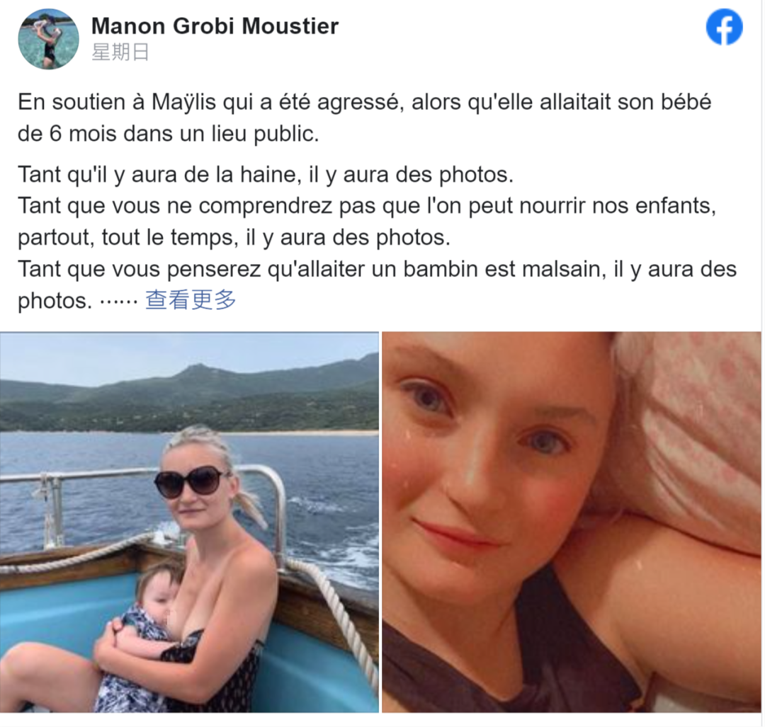 此外,还有大量女性在Facebook上晒出自己给孩子喂奶的照片,来支持Maÿlis,并强调给孩子喂母乳是再正常不过的画面了。