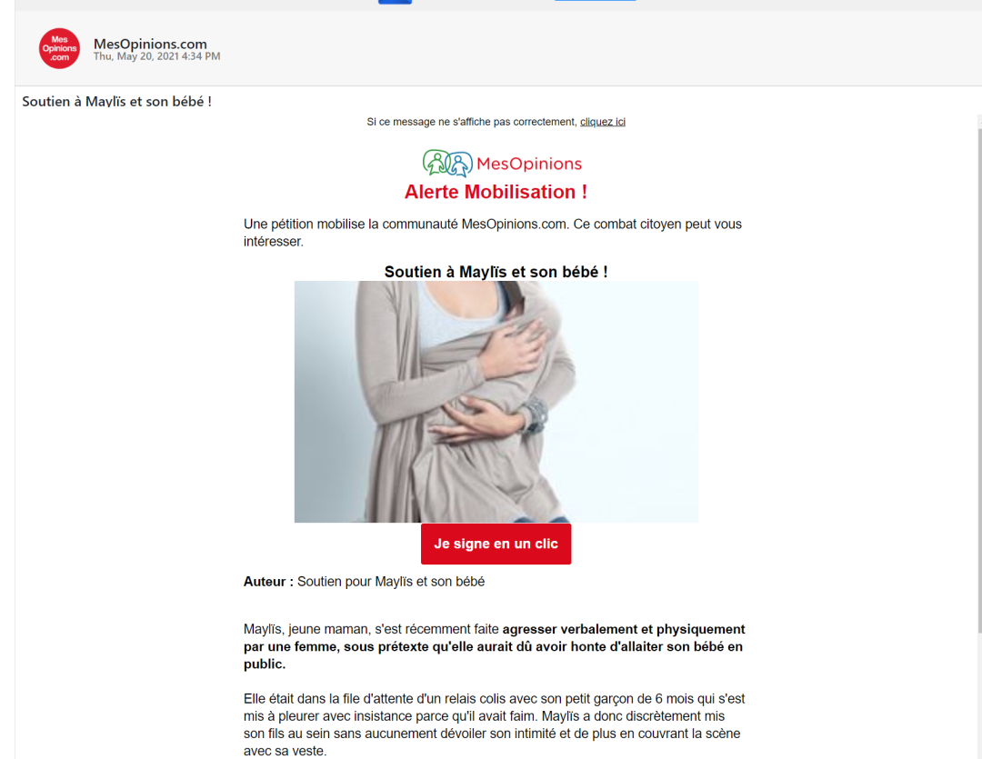 ▲Maÿlis朋友建立的支持公共场所女性哺乳的网站截图。