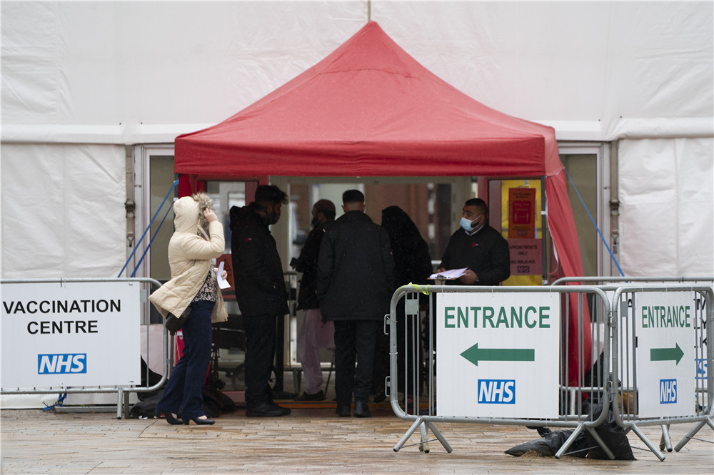 5月21日,人们进入英国英格兰北部布莱克本的一个新冠疫苗接种点。(图片来源:新华社)