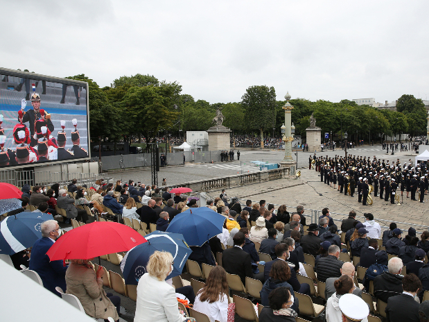 7月14日在法国巴黎协和广场拍摄的国庆阅兵式现场。