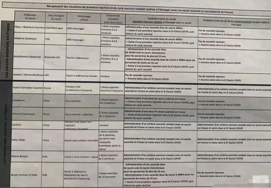至于“当前补打第三剂的请求是否会被拒绝”,在此,小编在网上找到了一张巴黎社会医疗保险局提供的“海外疫苗”摘要,法国接种中心的医生们应该也是根据这张表格做出判断: