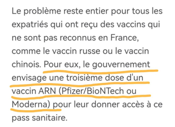 也就是说,即使你是法国籍,打了国产疫苗也照样拿不到健康通行证。就更不用说非法国籍了……