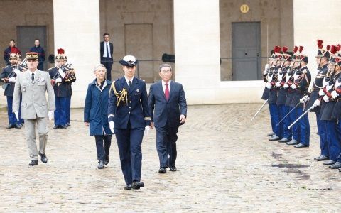 法国总理博尔内与李强举行会谈并为李强举行欢迎仪式