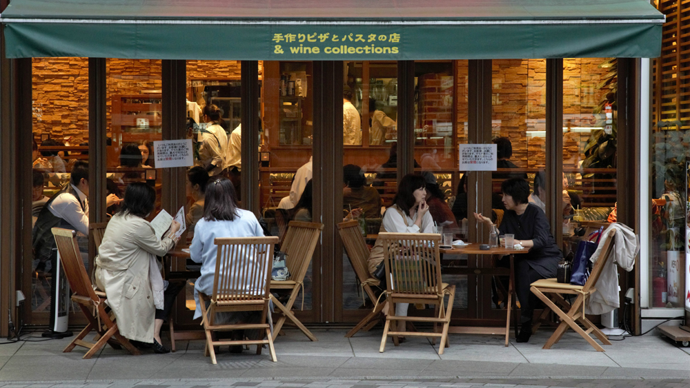 近期日本疫情有反弹趋势。图为东京民众在室外喝下午茶。(图片来源:中新社)
