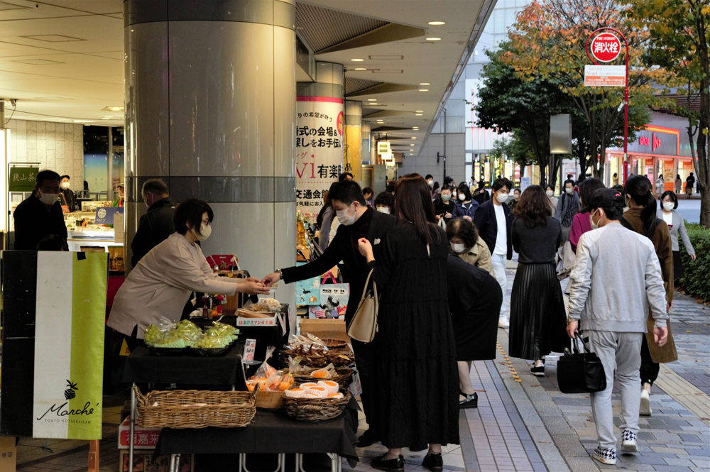 图为东京民众在水果摊购物。(图片来源:中新社)