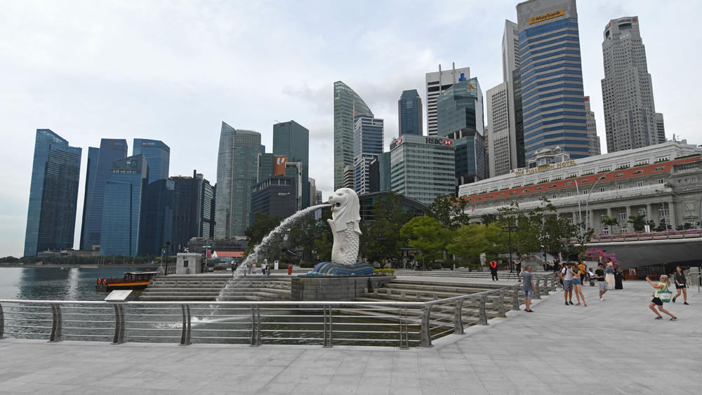 图为新加坡标志性建筑鱼尾狮。(图片来源:新华社)