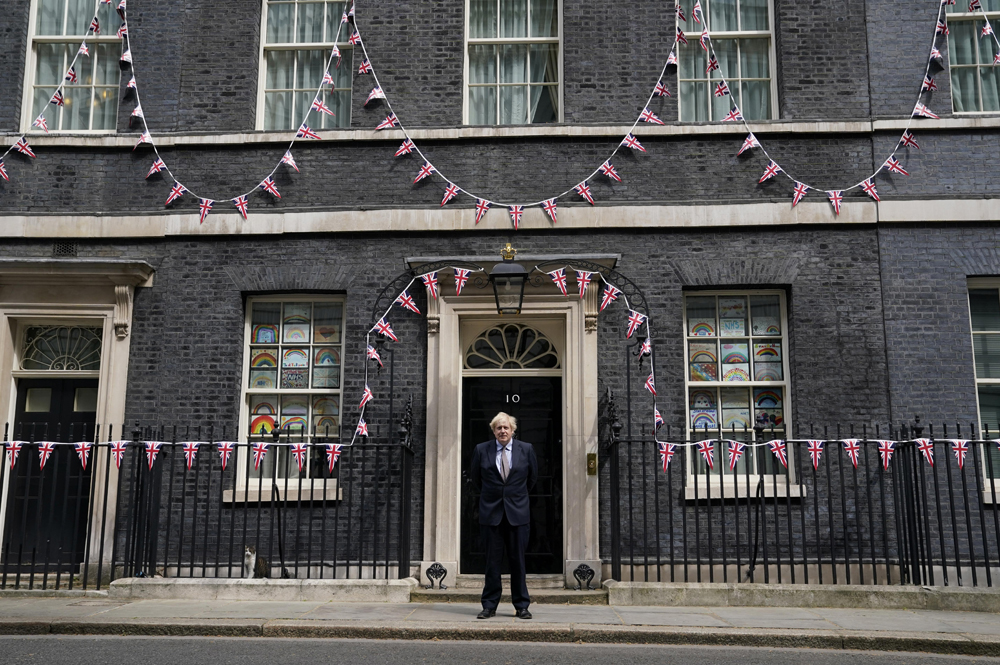 图为英国首相约翰逊在唐宁街10号首相府外参与纪念活动。(图片来源:新华社)