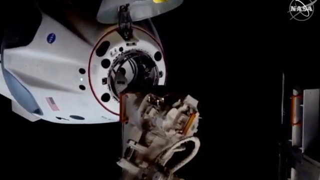 美国太空探索技术公司“龙”飞船正在与国际空间站对接。(图片来源:新华社)