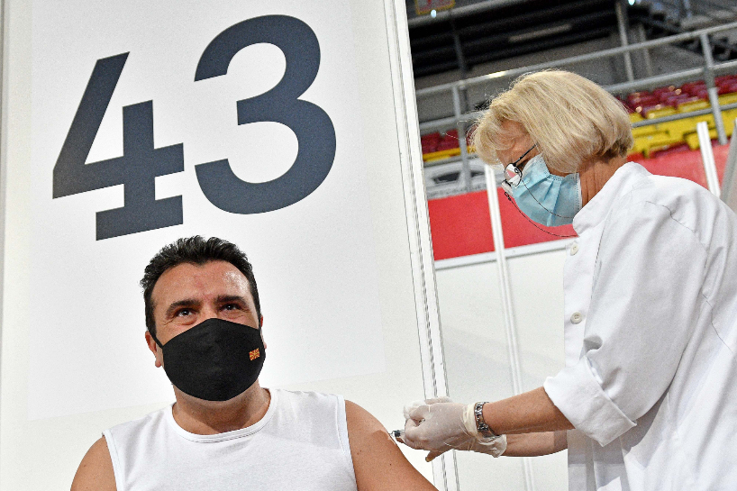 多国领导人为中国疫苗投下信任票。5月6日,北马其顿总理扎埃夫接种中国国药集团新冠灭活疫苗。(图片来源:新华社)