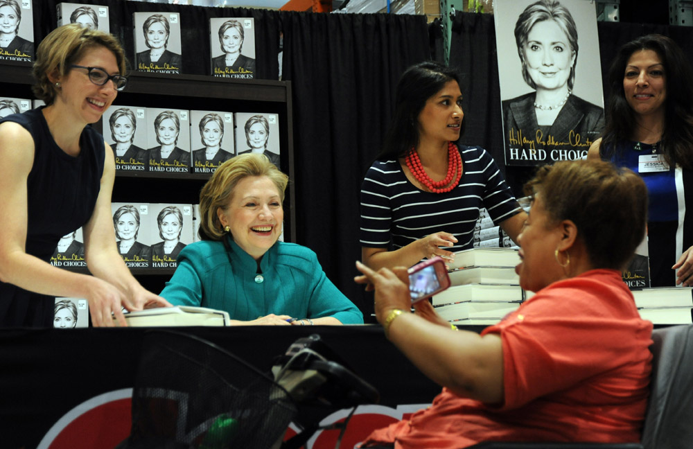 2014年6月14日,美国前国务卿希拉里•克林顿现身首都华盛顿附近一家仓储连锁超市,为读者签售其新回忆录《艰难抉择》。(图片来源:中新社)