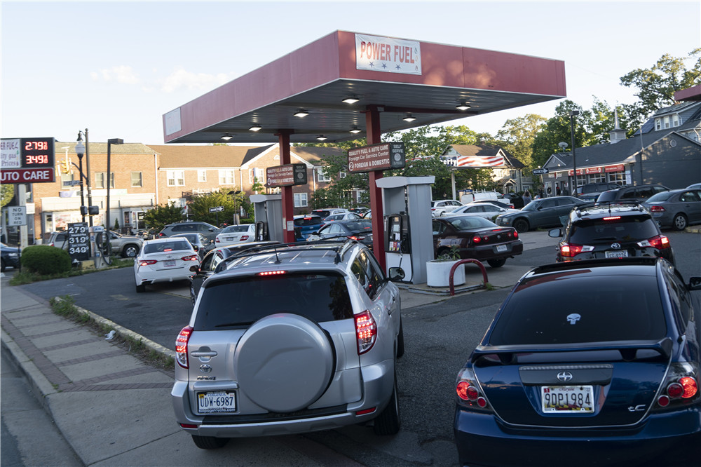 5月12日,车辆在美国弗吉尼亚州阿灵顿一个加油站排队加油。(图片来源:新华社)
