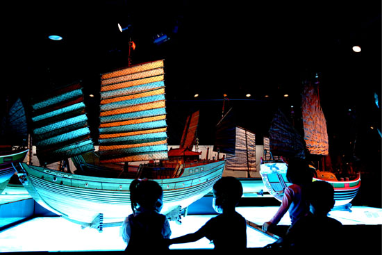 5月18日,上海全市各文博单位推出种类众多的“文博大餐”。图为观众在中国航海博物馆参观。