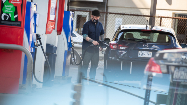 一名男子在美国纽约布鲁克林区的一家加油站加油。(图片来源:新华社)
