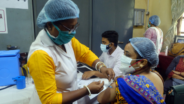 一名小学教师在印度加尔各答接种新冠疫苗。(图片来源:新华社)