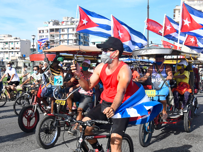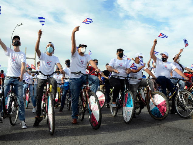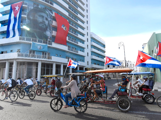 数百名古巴青年8月5日在首都哈瓦那举行保卫国家和平、团结反美游行,要求美国解除对古巴近60年的封锁。游行活动由古巴共产主义青年联盟组织。当天,由汽车、摩托车、自行车等组成的车队,沿着哈瓦那约7公里长的海滨大道行进。
